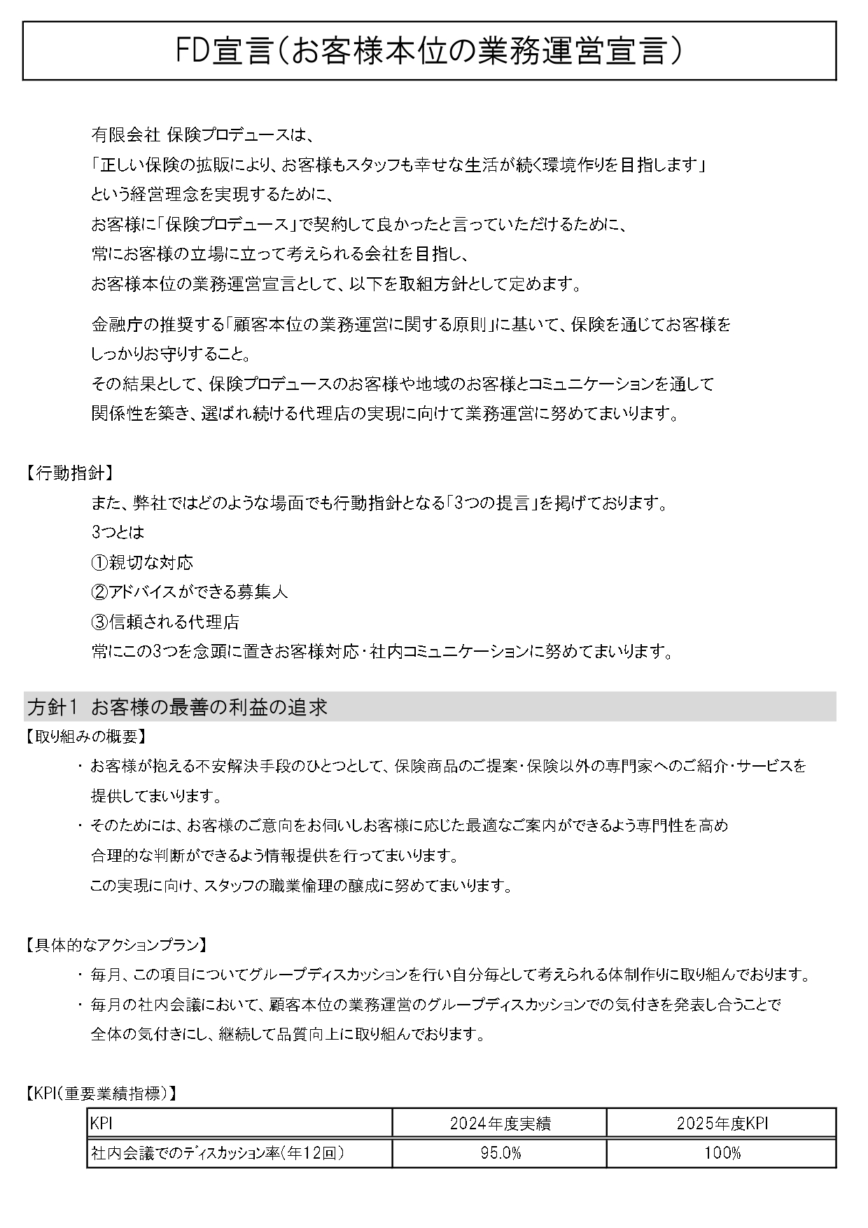 FD宣言(お客様本位の業務運営宣言)